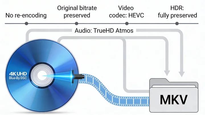 REMUX is the process of extracting video and audio streams from a Blu-ray disc and placing them into a new container (usually MKV) without transcoding and without any loss of quality. The bitrate, codec, and every bit of data remain unchanged—a 1:1 copy of the original disc.